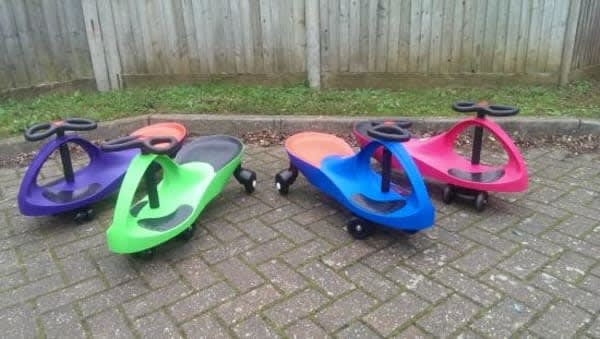 Adults and children can come and play on these fun and exciting didicars. They will make a great addition to any party. No batteries, motors or pedals, just keep moving the steering wheel and away you go, forward or reverse its up to you.